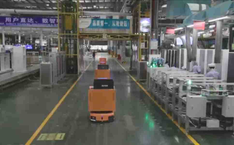 为车载冰箱物流配送打造的智能解决方案,,,,包含产中物流通过潜伏举升AMR搬运至线边,,,,产后成品物流智能仓储,,,流程包含产中物流智能齐套入库,,,线边安灯叫料AMR智能配送至线边,,,,成品入库、、、出库,,通过无人堆高车机器人,,,智能仓储管理替代人工作业管理,,,,实现更高存储、、、更高效率、、、更具柔性化的解决方案。。